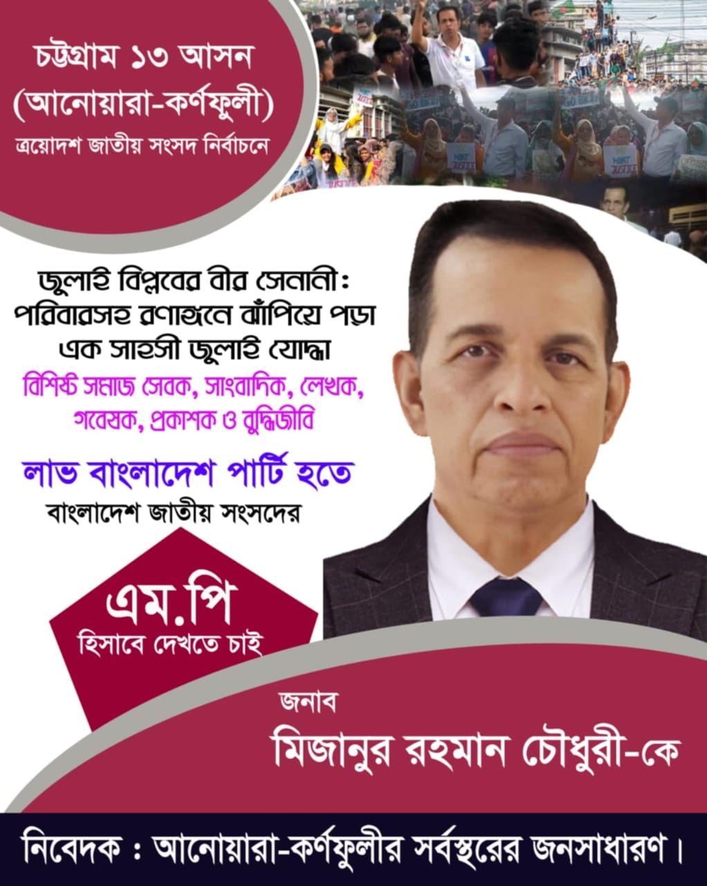 চট্টগ্রাম-১৩ আসনের সাংসদ হিসেবে মিজান চৌধুরীকে দেখতে চান সচেতন নাগরিকরা