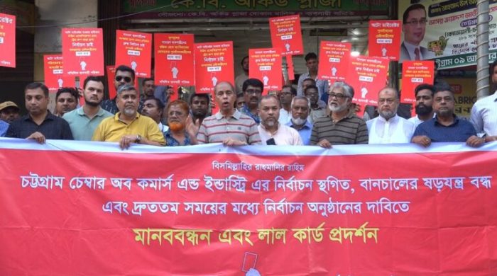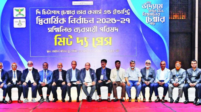 ব্যবসায়ীদের স্বার্থরক্ষা ও বাণিজ্যিক রাজধানী- আধুনিক চেম্বার গঠনের অঙ্গীকার চট্টগ্রাম চেম্বার নির্বাচনে সম্মিলিত ব্যবসায়ী পরিষদের ইশতেহার ঘোষণা দি চিটাগাং চেম্বার অব কমার্স অ্যান্ড ইন্ডাস্ট্রির দ্বি–বার্ষিক নির্বাচন (২০২৫–২০২৭) উপলক্ষে ‘সম্মিলিত ব্যবসায়ী